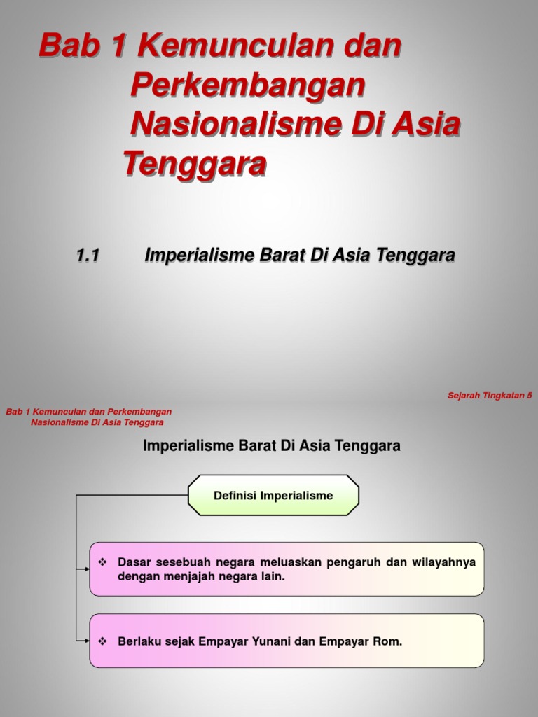 Imperialisme Di Asia Tenggara / Bab 1 Imperialisme Barat Di Asia Tenggara Ting 5 Youtube / Britain yang mengalami revolusi perindustrian telah mengorak langkah untuk menguasai negara di asia tenggara atas dasar kekuatan maritim dan menjadi kuasa imperialis yang kuat.. Nasionalisme di asia tenggara 1. Imperialisme adalah suatu kebijakan di mana sebuah negara besar untuk. Apakah yang anda faham tentang konsep nasionalisme di asia tenggara? Pemerintahan tempatan telah terpaksa menerima penasihat dan pentadbir dari barat. Sekitar 500 juta orang, secara langsung maupun tak langsung, pernah jadi koloni inggris membentang dari afrika selatan, amerika utara, asia selatan dan tenggara, sampai australia.