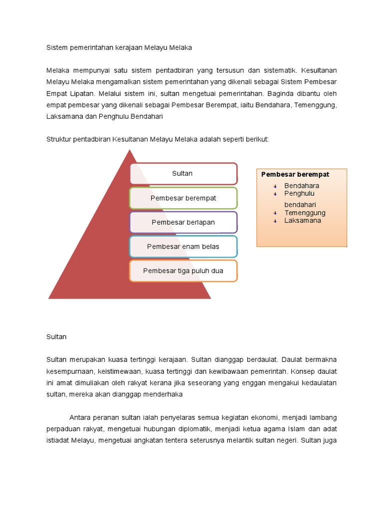 Sistem pentadbiran kesultanan melayu melaka. Maybe you would like to learn more about one of these? Check spelling or type a new query. We did not find results for: